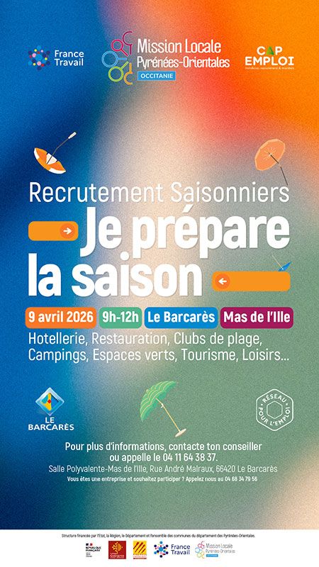Organisé par la Mission Locale Jeunes des Pyrénées-Orientales, en partenariat avec France Travail, Cap Emploi et la Ville du Barcarès, ce forum est un temps fort pour toutes celles et ceux qui souhaitent anticiper la saison estivale 2026.