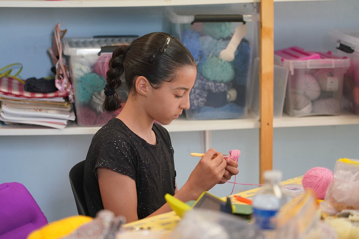 Garçons et filles ont découvert les gestes de base, appris à manier le crochet ou les aiguilles … et surtout pris plaisir à créer de leurs propres mains.
