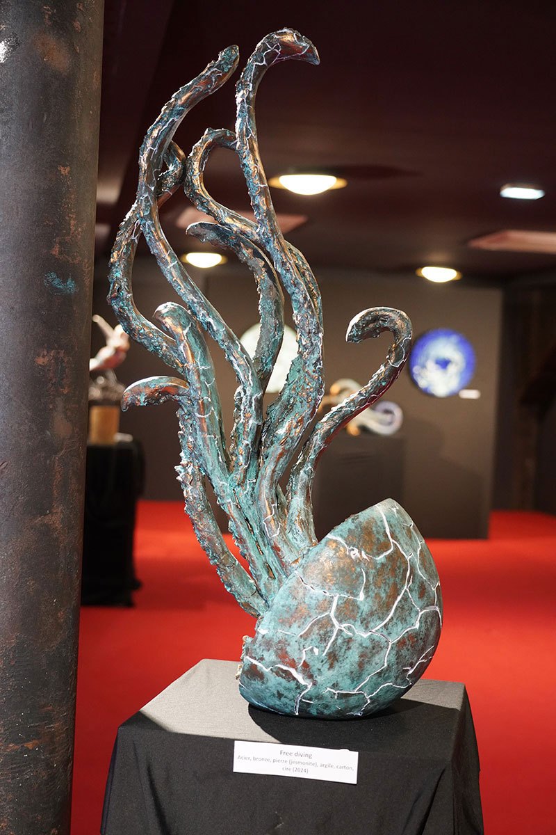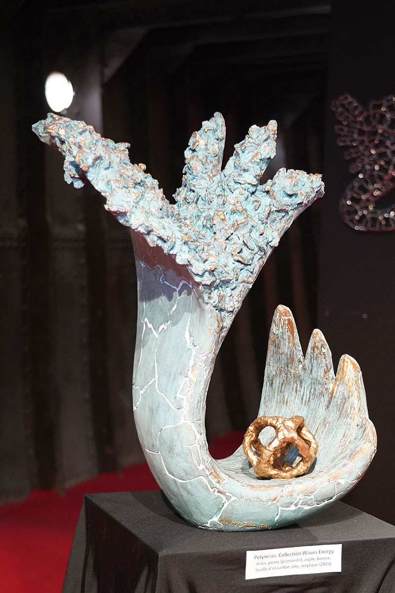 VIRGINIE DEVIN : son travail lie intrinsèquement les matières naturelles telles l’argile craquelée, la pierre, le bois, l’acier, le bronze oxydé, le cristal ou le verre. Reconnue pour son unicité et sa signature «bleue», elle est exposée dans des lieux prestigieux et galeries renommées