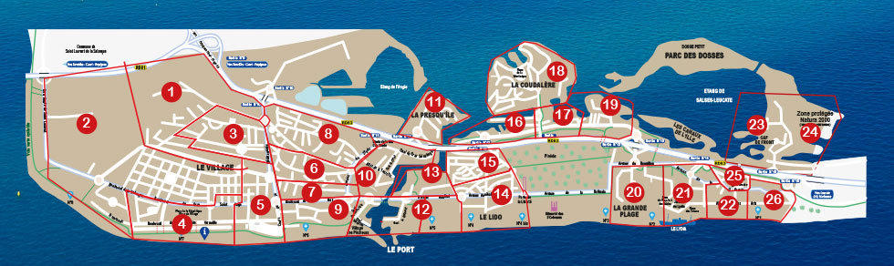 La commune du Barcarès dispose d’un territoire particulièrement étendu composé de différents quartiers